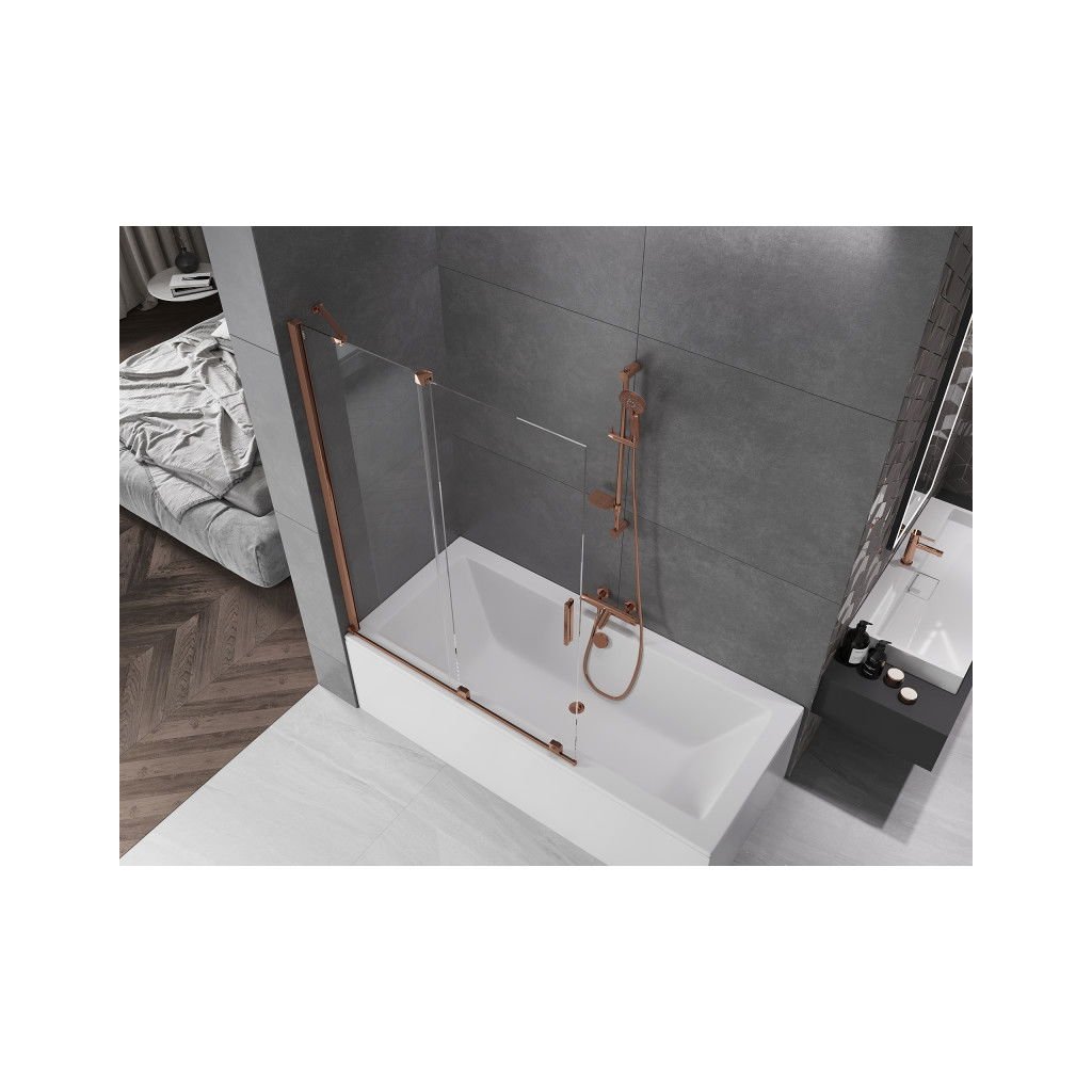 Mexen Velar, 2 szárnyas eltolható kádparaván 120 x 150 cm, 8mm átlátszó üveg, rózsaszín arany, 896-120-000-01-60