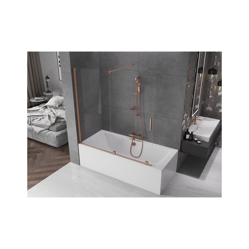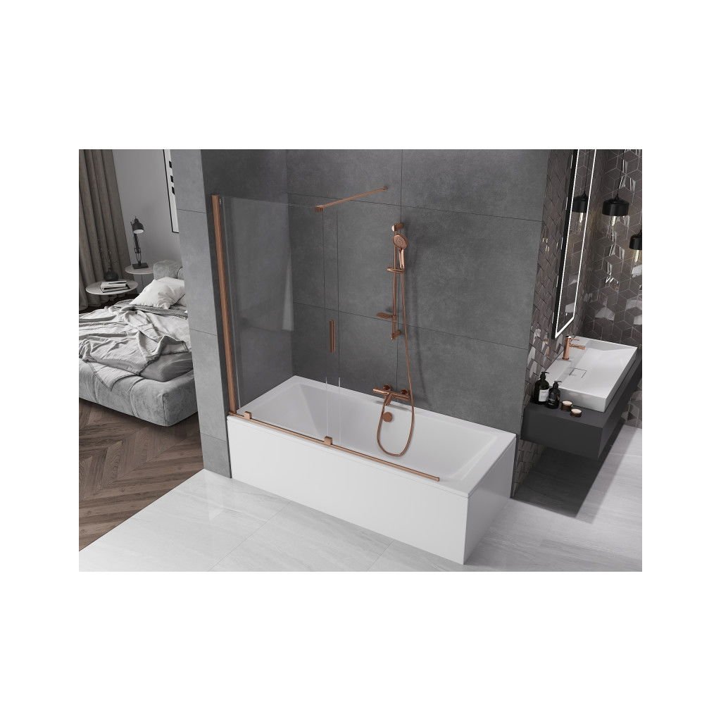 Mexen Velar, 2 szárnyas eltolható kádparaván 160 x 150 cm, 8mm átlátszó üveg, rézmatt, 896-160-000-01-65