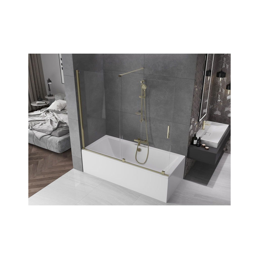 Mexen Velar, 2 szárnyas eltolható kádparaván 180 x 150 cm, 8mm átlátszó üveg, arany fényes profil, 896-180-000-01-50