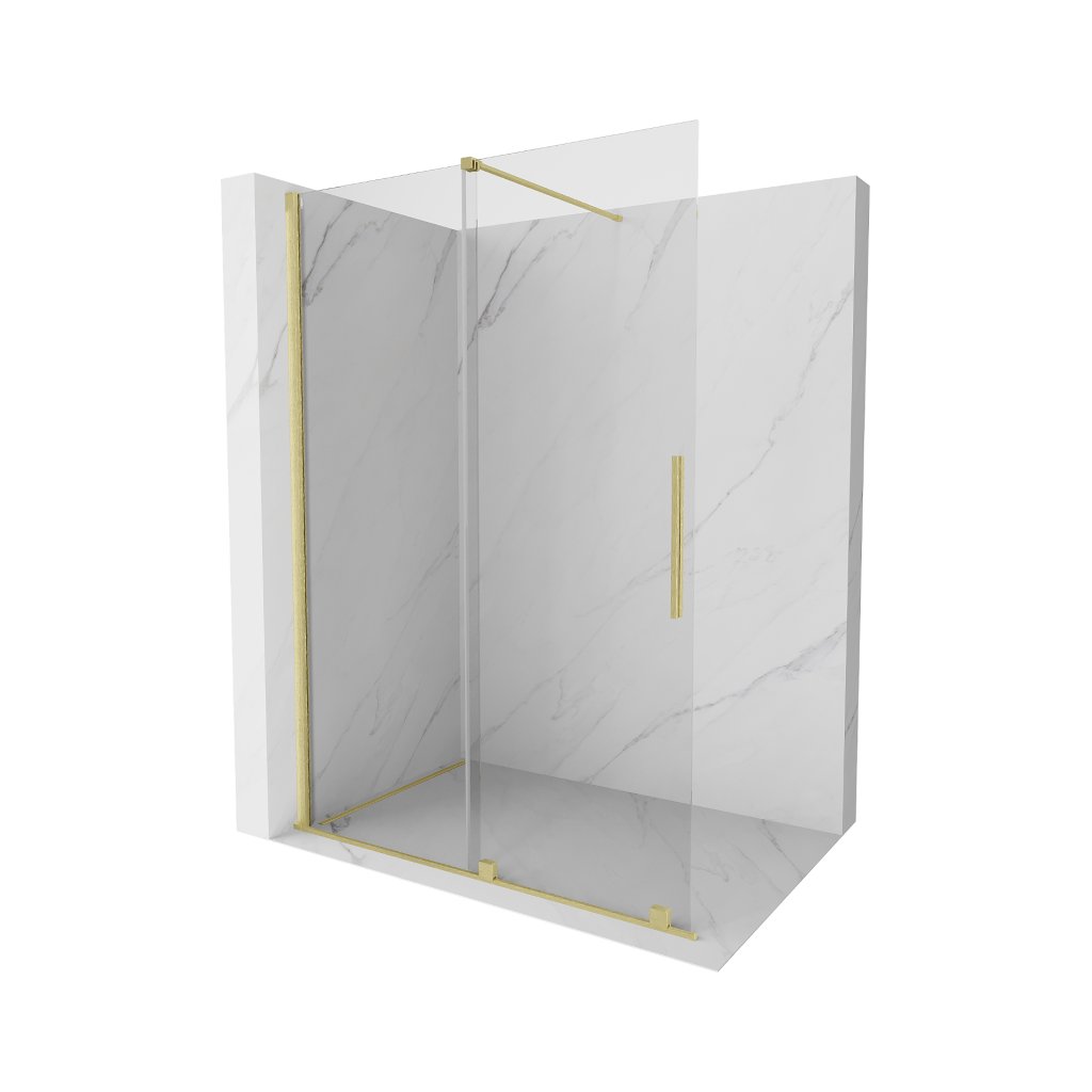 Mexen Velar, nyílásba tolóajtó Walk-In típusú 160 cm, 8 mm átlátszó üveg, arany matt, 871-160-000-03-55