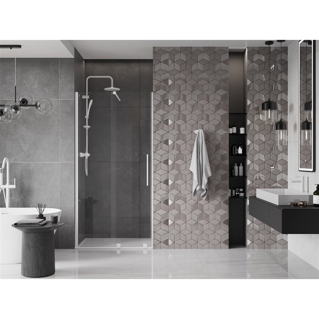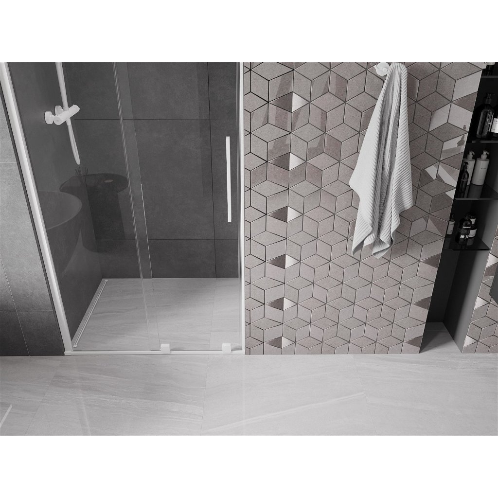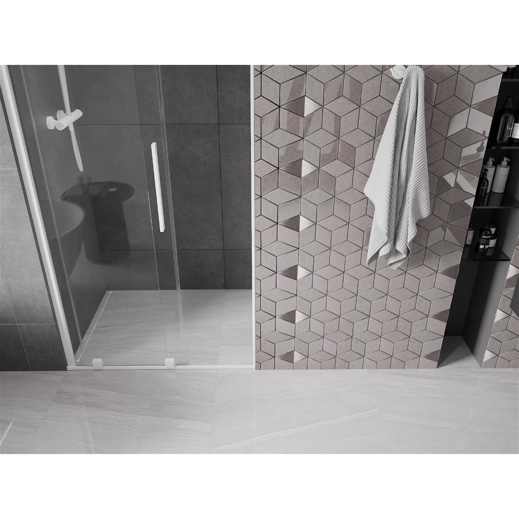 Mexen Velar, nyitható tolóajtó 85x200 cm, 8mm átlátszó üveg, fehér, 871-085-000-01-20