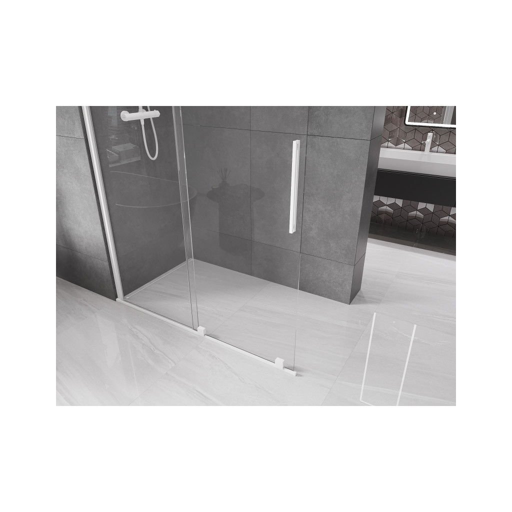 Mexen Velar, tolóajtó a nyílásba Walk-In típus 130 cm, 8 mm átlátszó üveg, fehér, 871-130-000-03-20