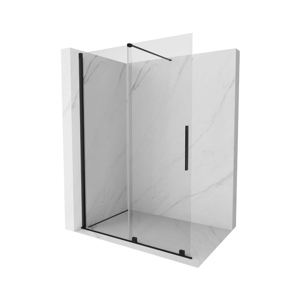 Mexen Velar, tolóajtó a nyílásba Walk-In típus 130 cm, 8 mm átlátszó üveg, fekete matt, 871-130-000-03-70