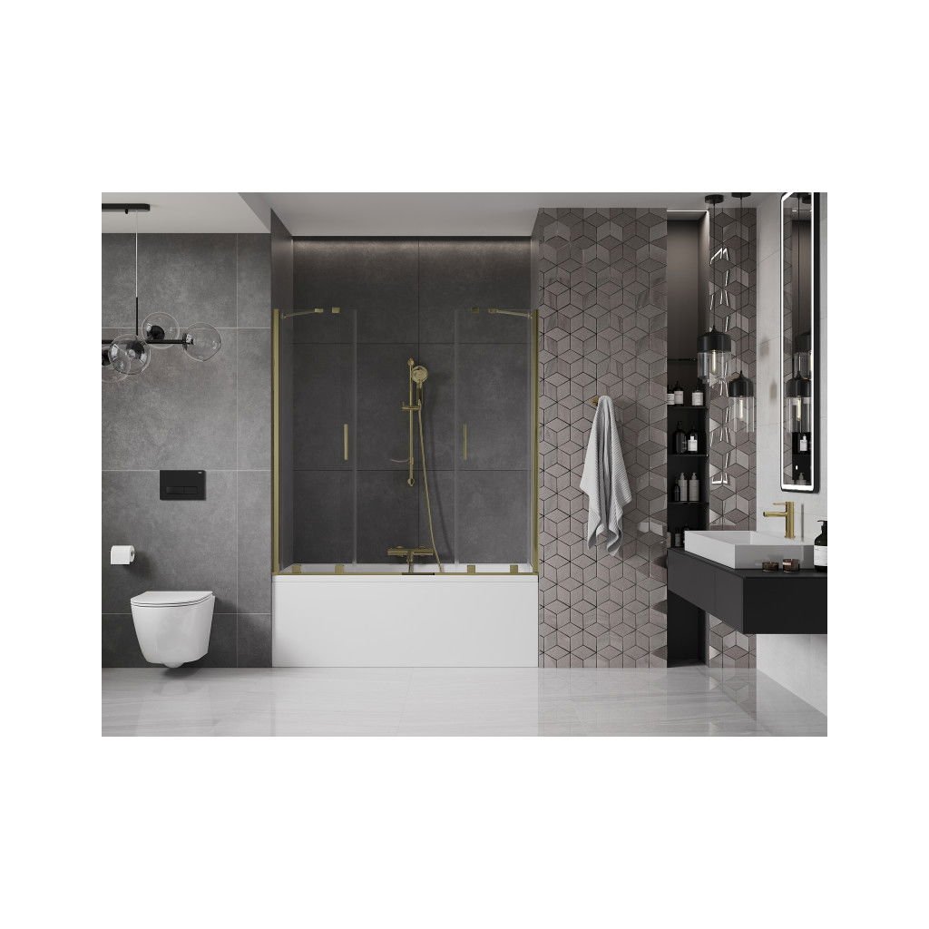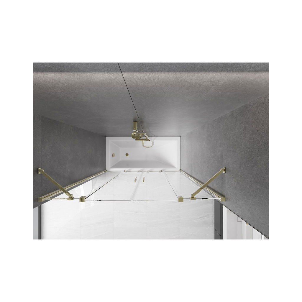Mexen Velar Duo, 2 szárnyas eltolható kádparaván 150 x 150 cm, 8mm átlátszó üveg, arany fényes profil, 896-150-000-02-50