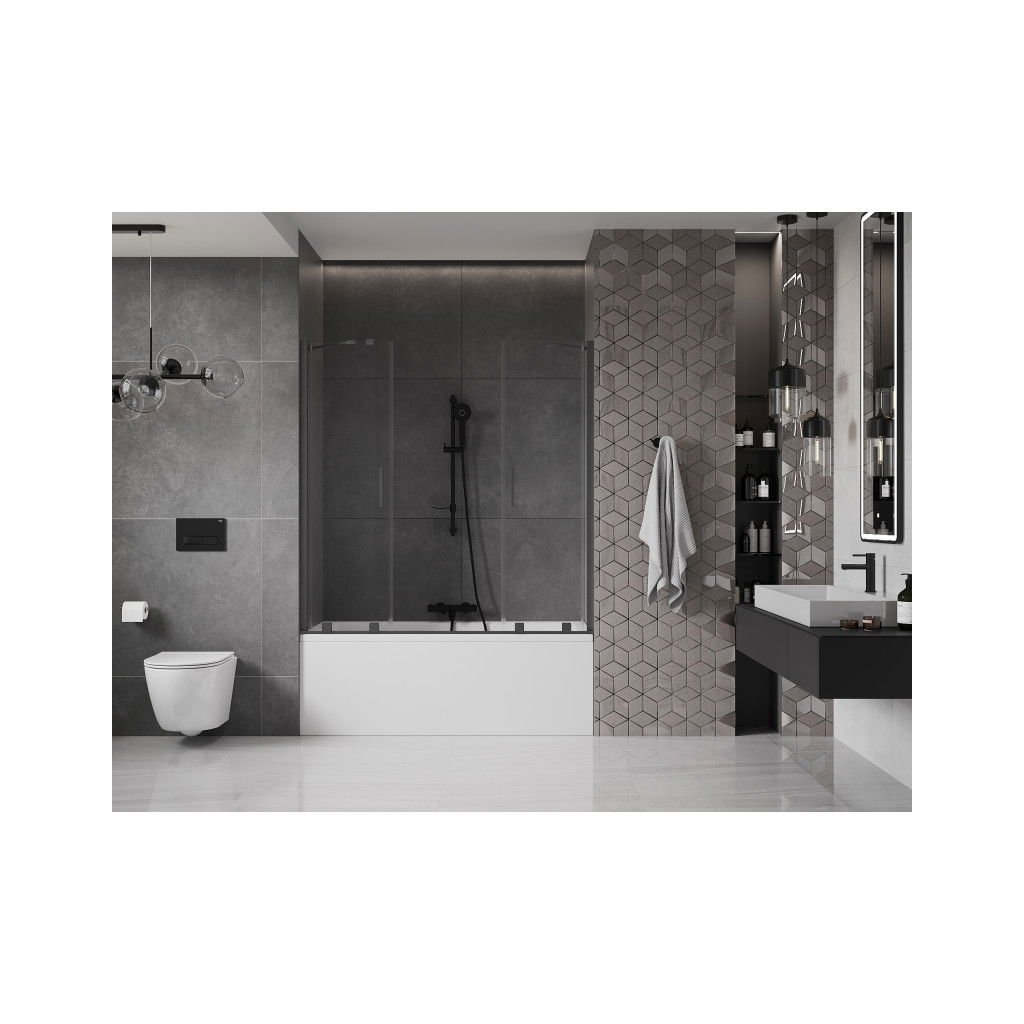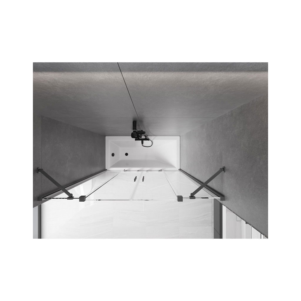 Mexen Velar Duo, 2 szárnyas eltolható kádparaván 150 x 150 cm, 8mm átlátszó üveg, fekete matt profil, 896-150-000-02-70