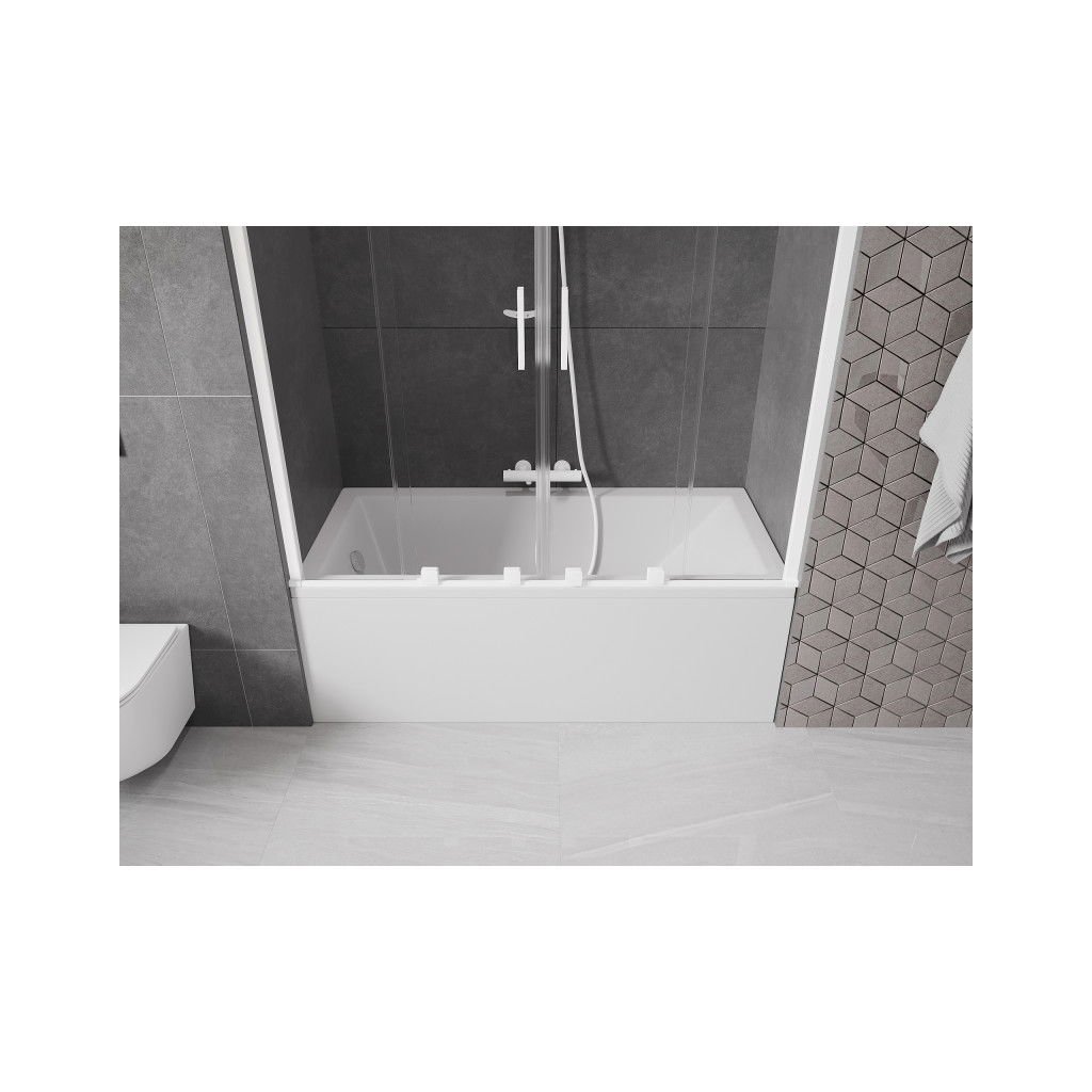 Mexen Velar Duo, 2 szárnyas eltolható kádparaván 160 x 150 cm, 8mm átlátszó üveg, fehér profil, 896-160-000-02-20