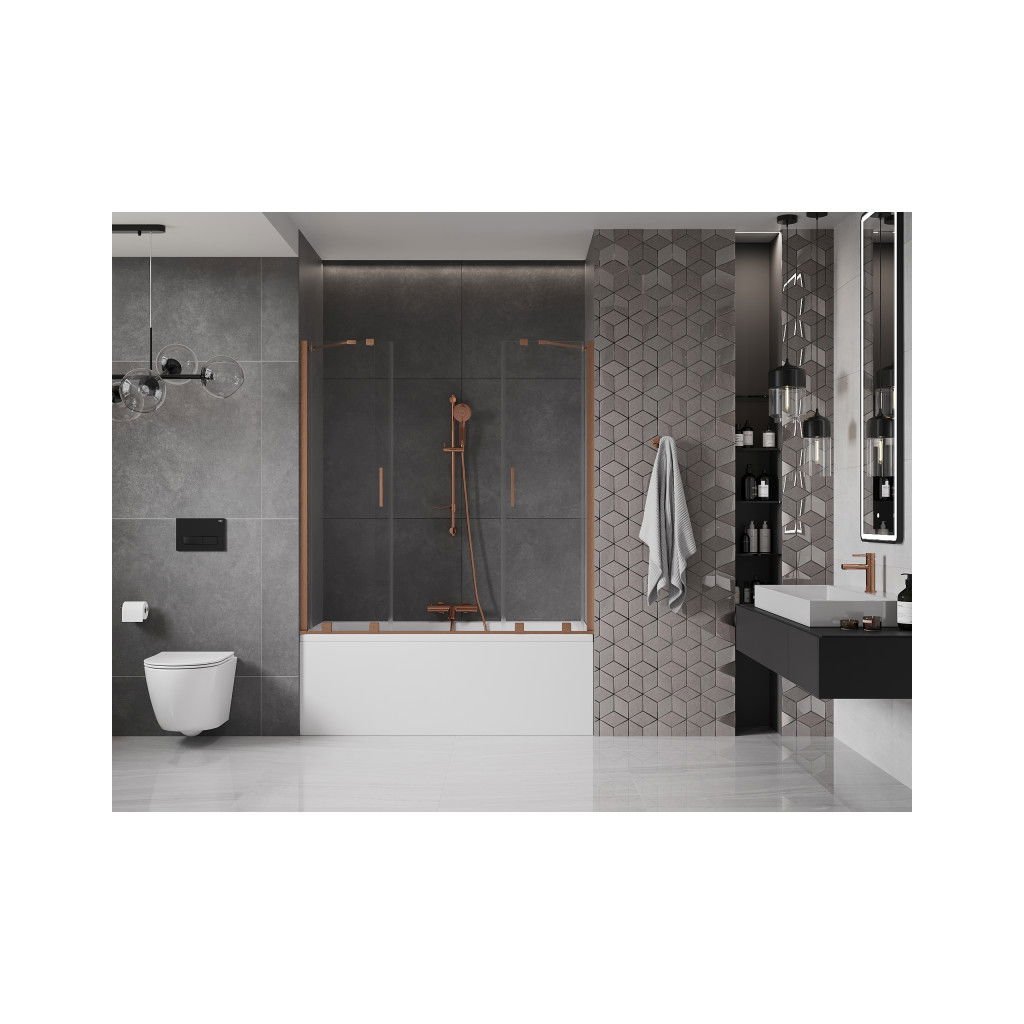 Mexen Velar Duo, 2 szárnyas eltolható kádparaván 160 x 150 cm, 8mm átlátszó üveg, réz matt profil, 896-160-000-02-65