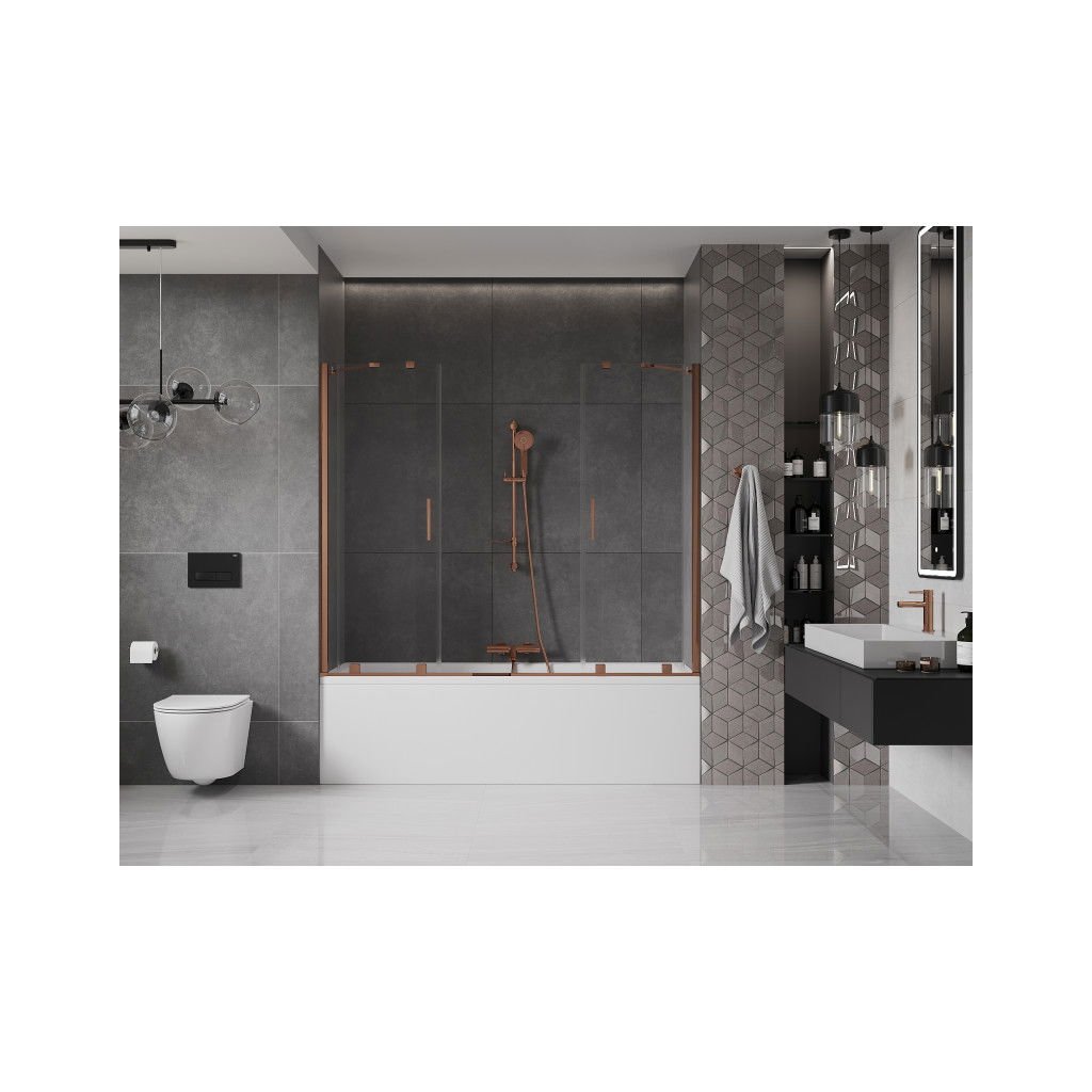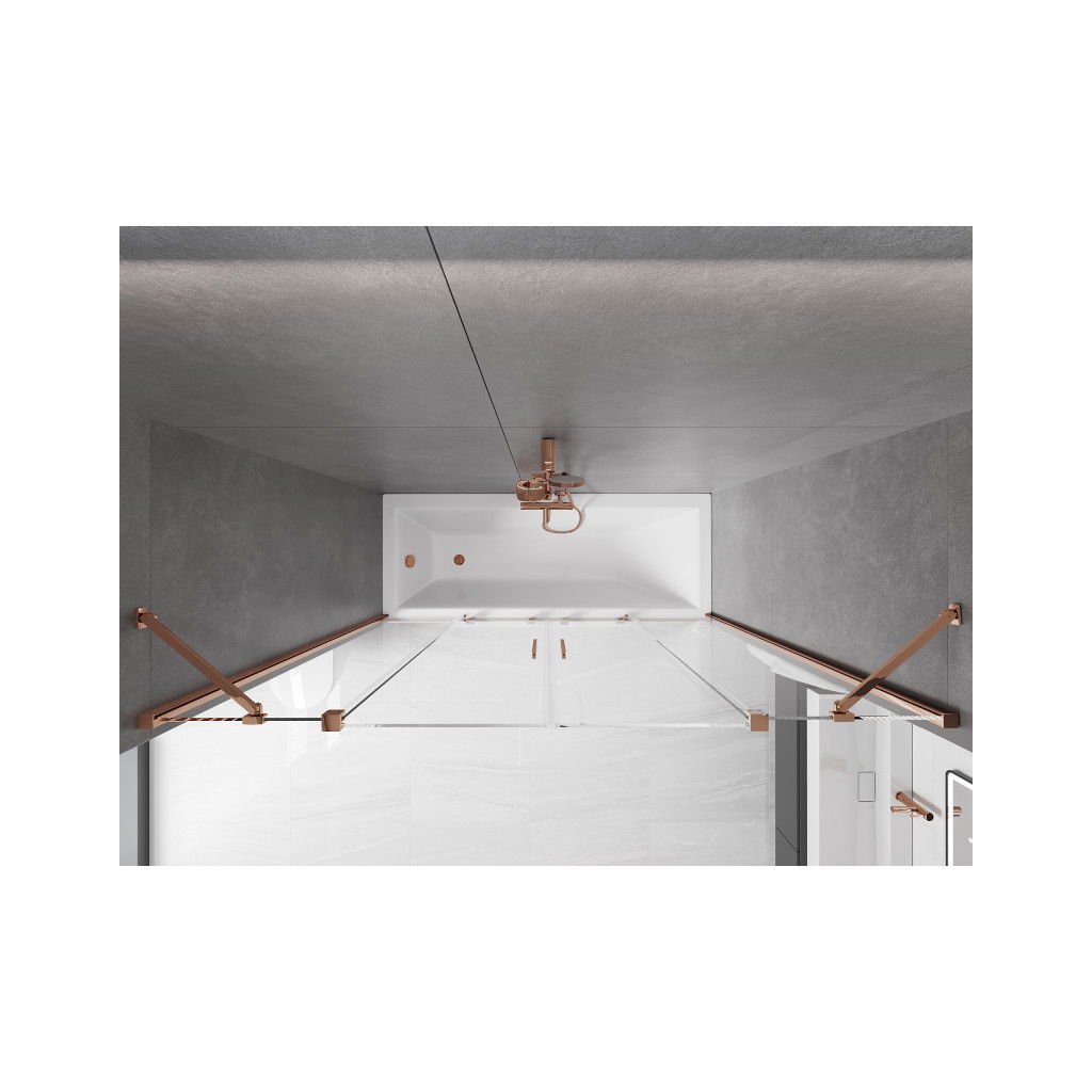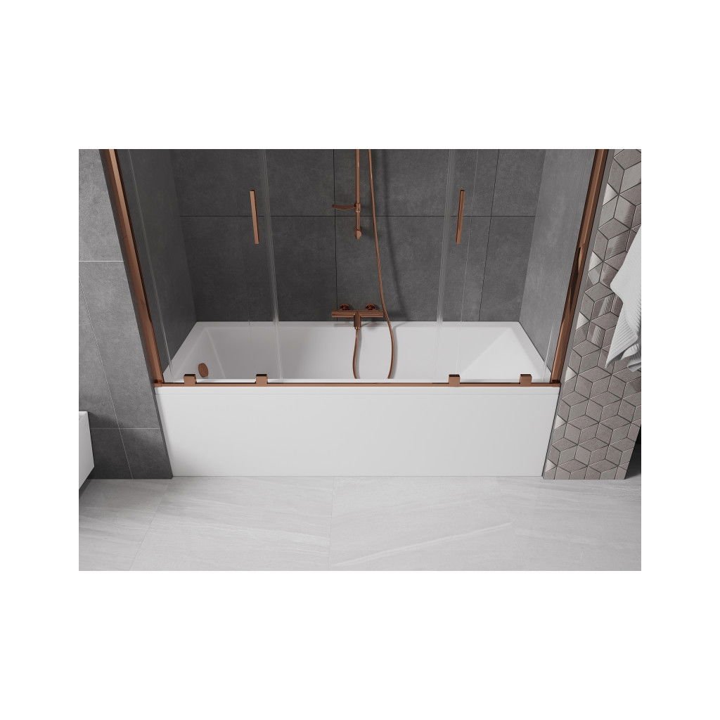 Mexen Velar Duo, 2 szárnyas kádparaván tolóajtóval 190 x 150 cm, 8mm átlátszó üveg, rózsa arany profil, 896-190-000-02-60