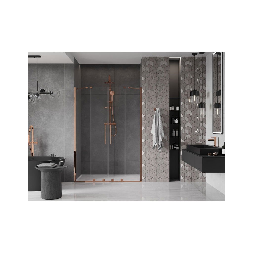 Mexen Velar Duo, nyitható tolóajtó 140x200 cm, 8mm átlátszó üveg, rózsa arany, 871-140-000-02-60