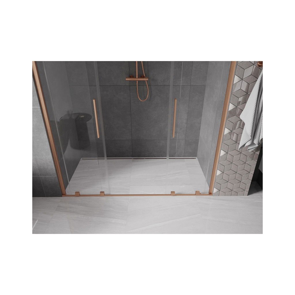 Mexen Velar Duo, nyitható tolóajtó 170x200 cm, 8mm átlátszó üveg, rézmatt, 871-170-000-02-65