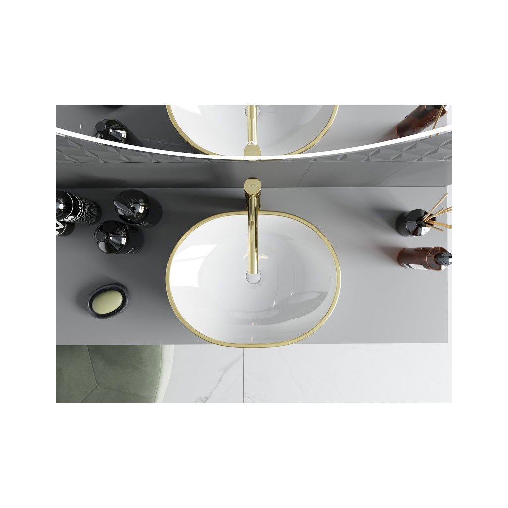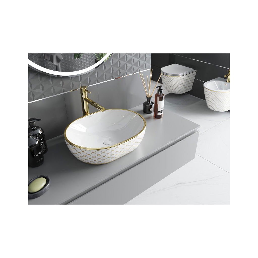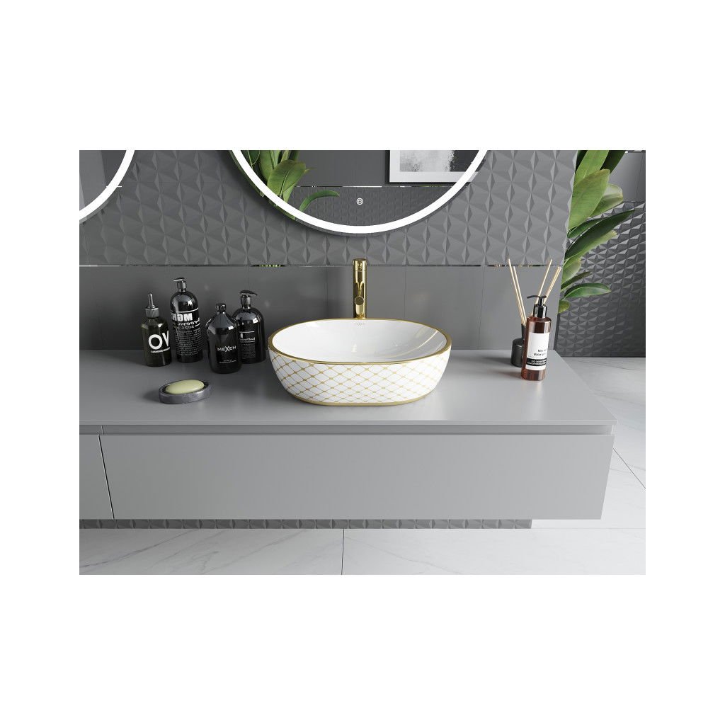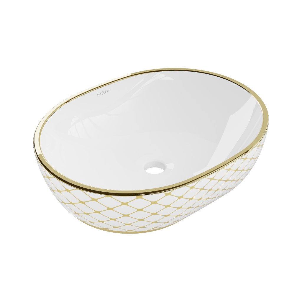Mexen Viki, asztali mosogató 48x35x14 cm, fehér-arany mintás, 21054809