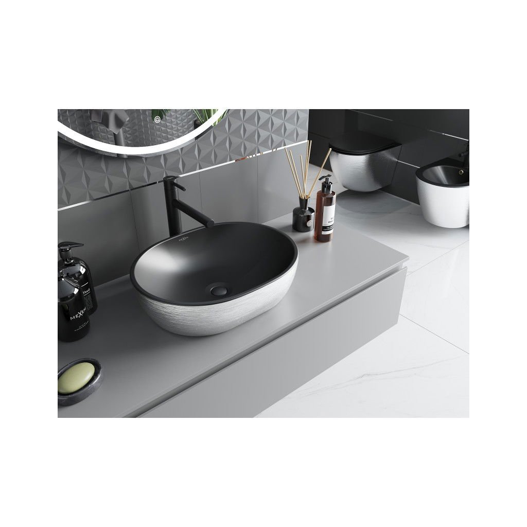 Mexen Viki, asztali mosogató 48x35x14 cm, fekete matt-ezüst mintás, 21054873