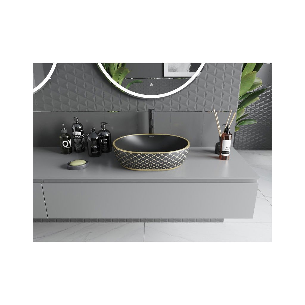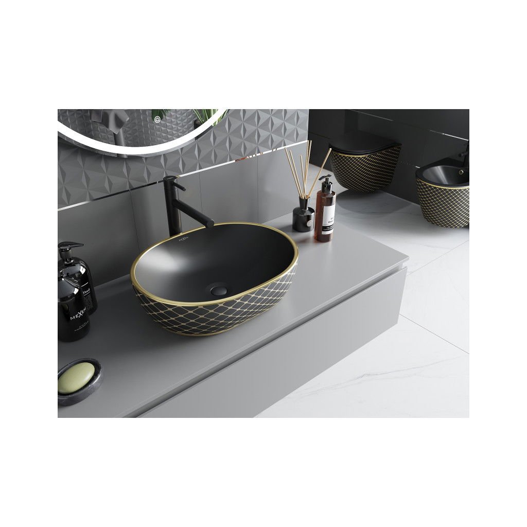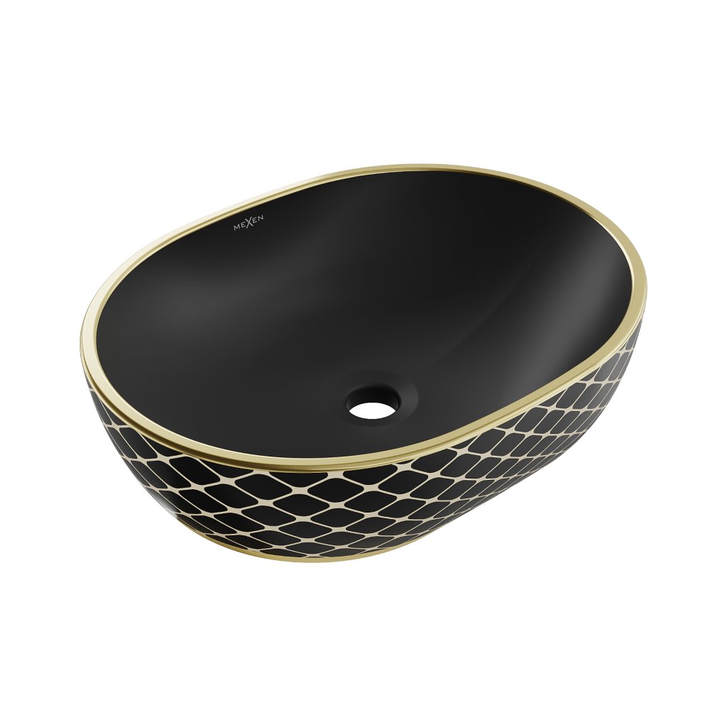 Mexen Viki, munkalap mosogató 48x35x14 cm, fekete matt-arany mintás, 21054879