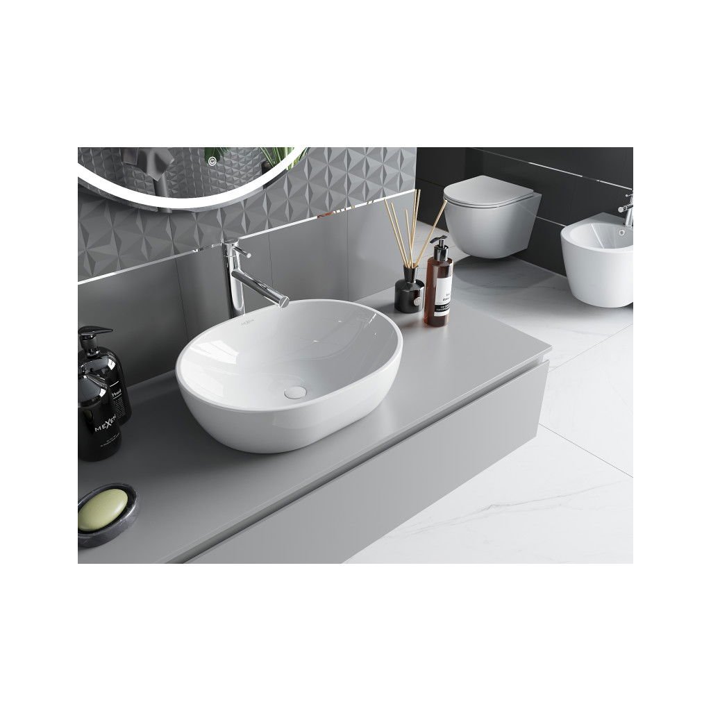 Aki saját egyedi fürdőszobáját szereli fel, mosdókagylóra keres megoldást, az nézze meg a VIKI modellt. A fürdőszobai felszerelések kiválasztásánál nem csak a megjelenés, hanem a funkcionalitás és a tartósság is vezérel bennünket. A Mexen Viki asztali mosdókagyló az egyik ilyen funkcionális, tartós és kellemes fürdőszobai elem. Fehér kerámia szaniter anyagból készült. Nincs túlfolyó nyílása. A termék ovális alakú, hosszabb oldala 48 centiméter, rövidebb oldala 35 centiméteres. Valószínűleg minden fürdőszoba különlegesnek tűnik, és egyedi stílust ad neki.