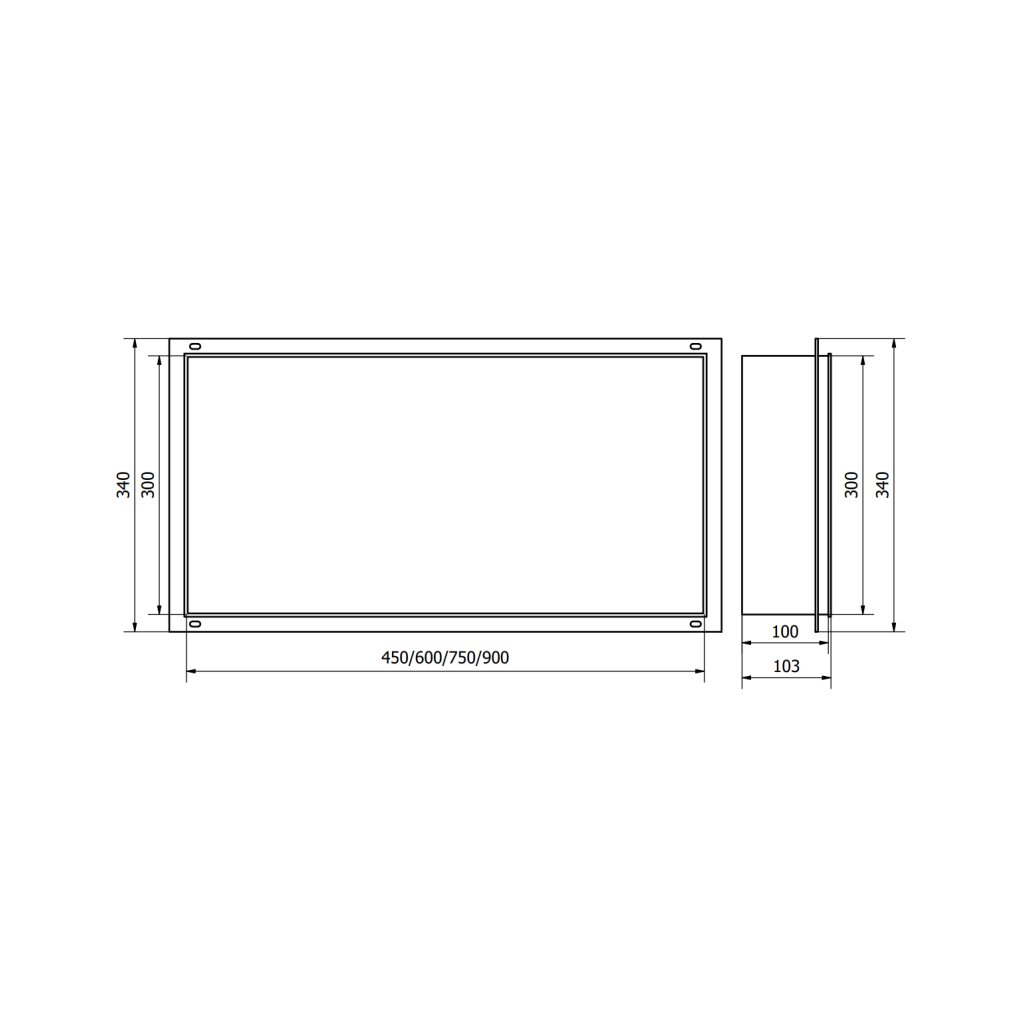 Mexen X-Wall-NR, csempe alá ágyazható polc gallér nélkül 60 x 30 cm, acél, 1911603010