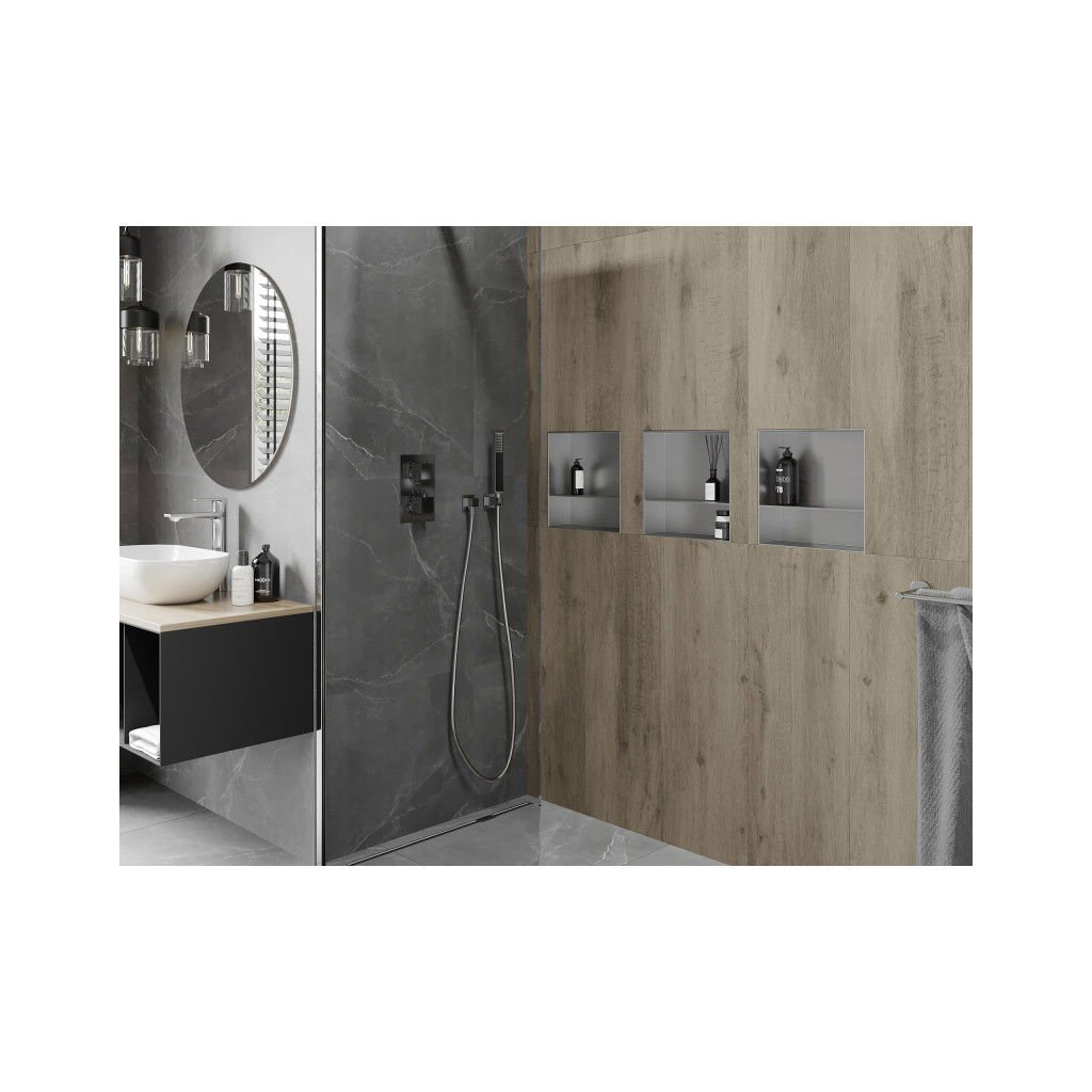 Mexen X-Wall-NR, polc a csempe alá beágyazáshoz gallér nélkül 30 x 30 cm, acél, 1911303010S