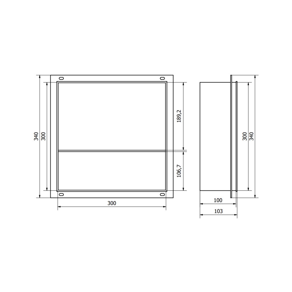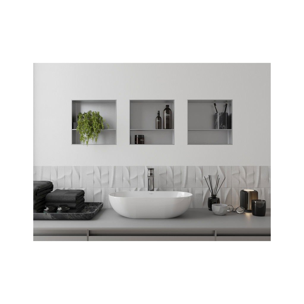 - Típus: falba ágyazható polc a burkolat alatt