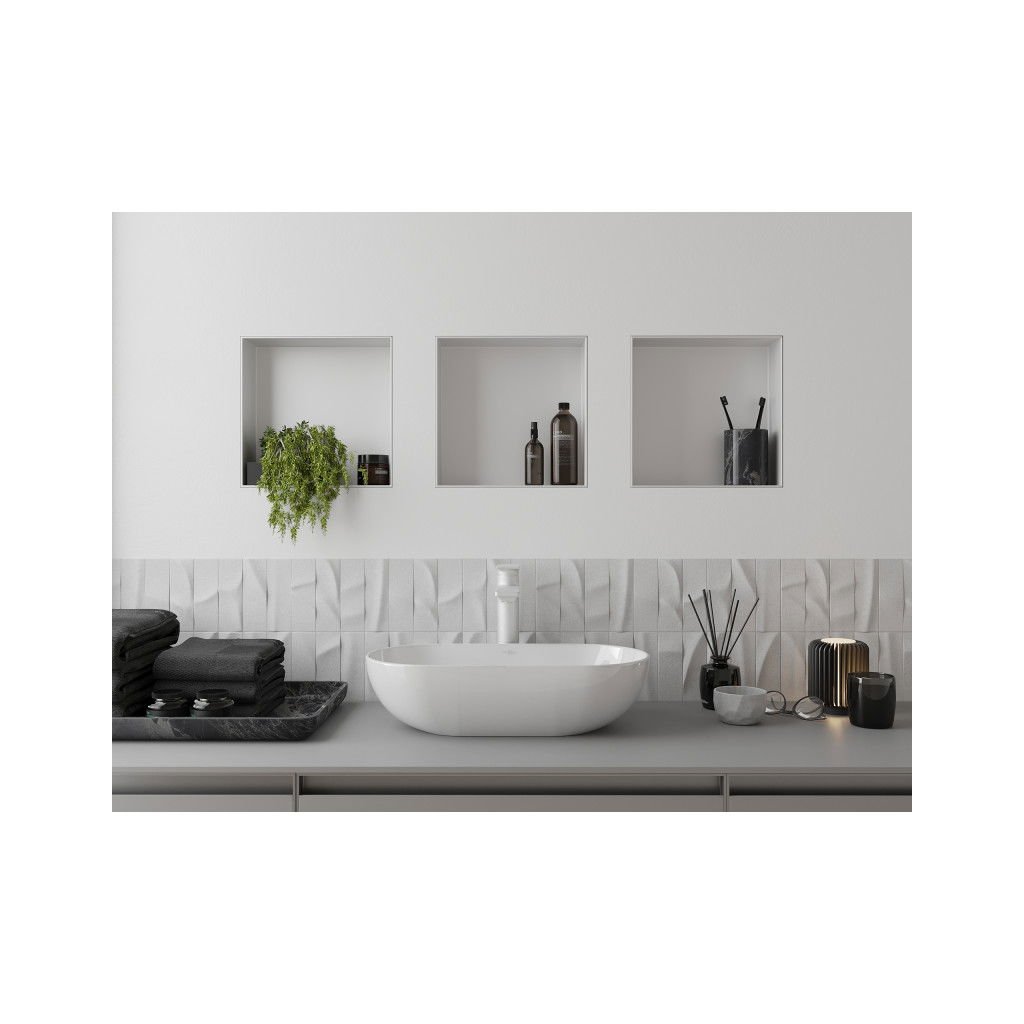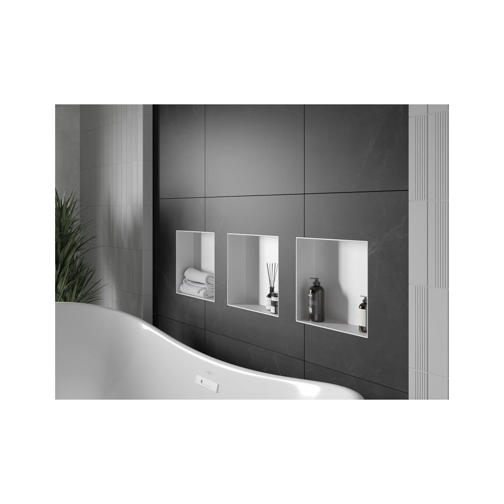 - Típus: falba ágyazható polc a burkolat alatt