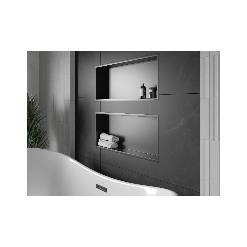 - Típus: falba ágyazható polc burkoláshoz