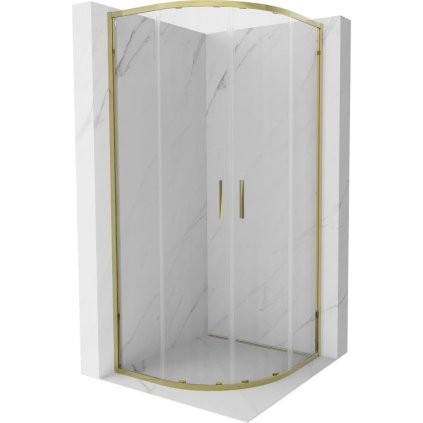 Mexen Exo, tolóajtós félkör alakú zuhanykabin 100 x 100 cm, átlátszó üveg, arany, 8132-100-100-50-00
