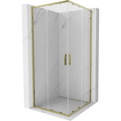 Mexen Exo, tolóajtós, négyzet alakú zuhanykabin 80 x 80 cm, átlátszó üveg, arany, 8111-080-080-50-00