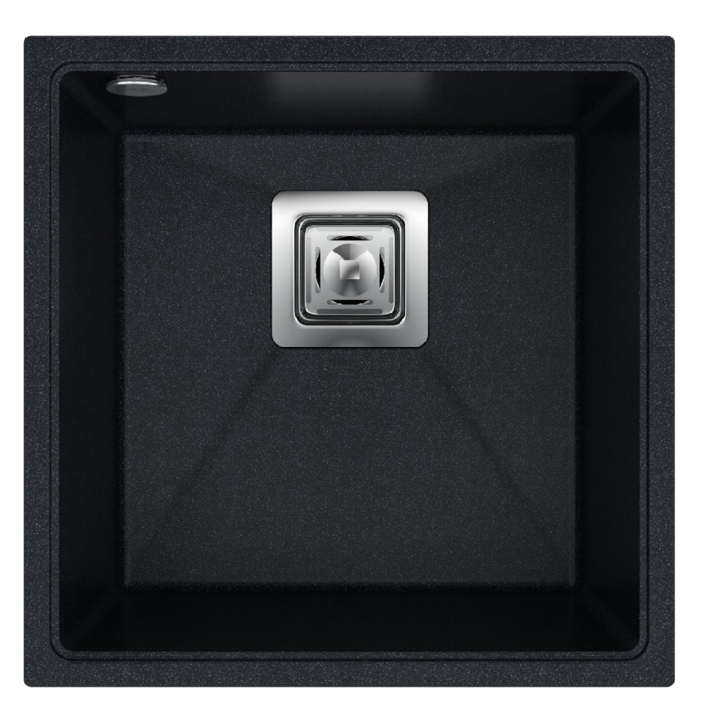 Mosogató Minőségi Argon 50, konyhai gránit mosogató 420x420x225 mm + króm szifon, fekete foltos-Brocade, SKQ-ARG.B.1KBO.50.X