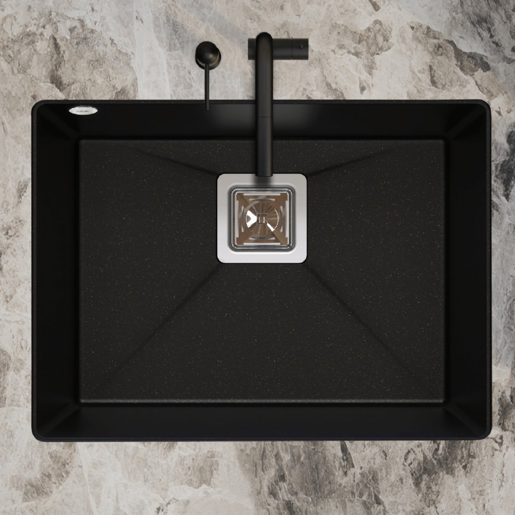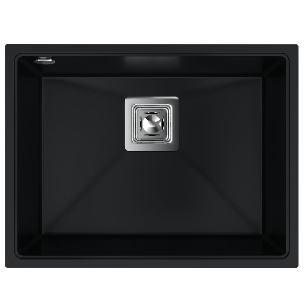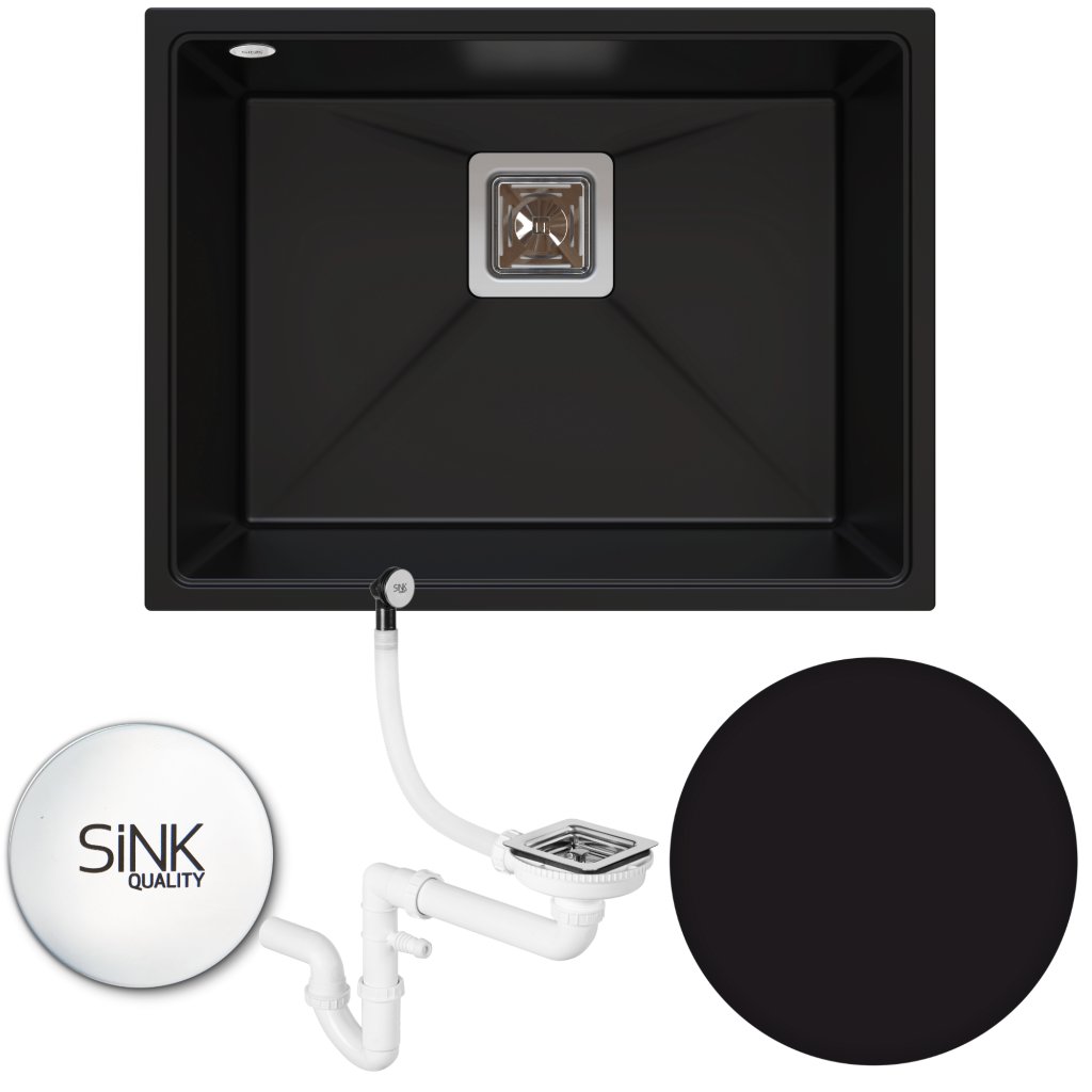 Mosogató Minőségi Argon 60, gránit konyhai mosogató 550x420x225 mm + króm szifon, fekete, SKQ-ARG.C.1KBO.60.X