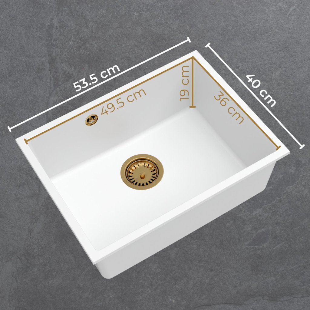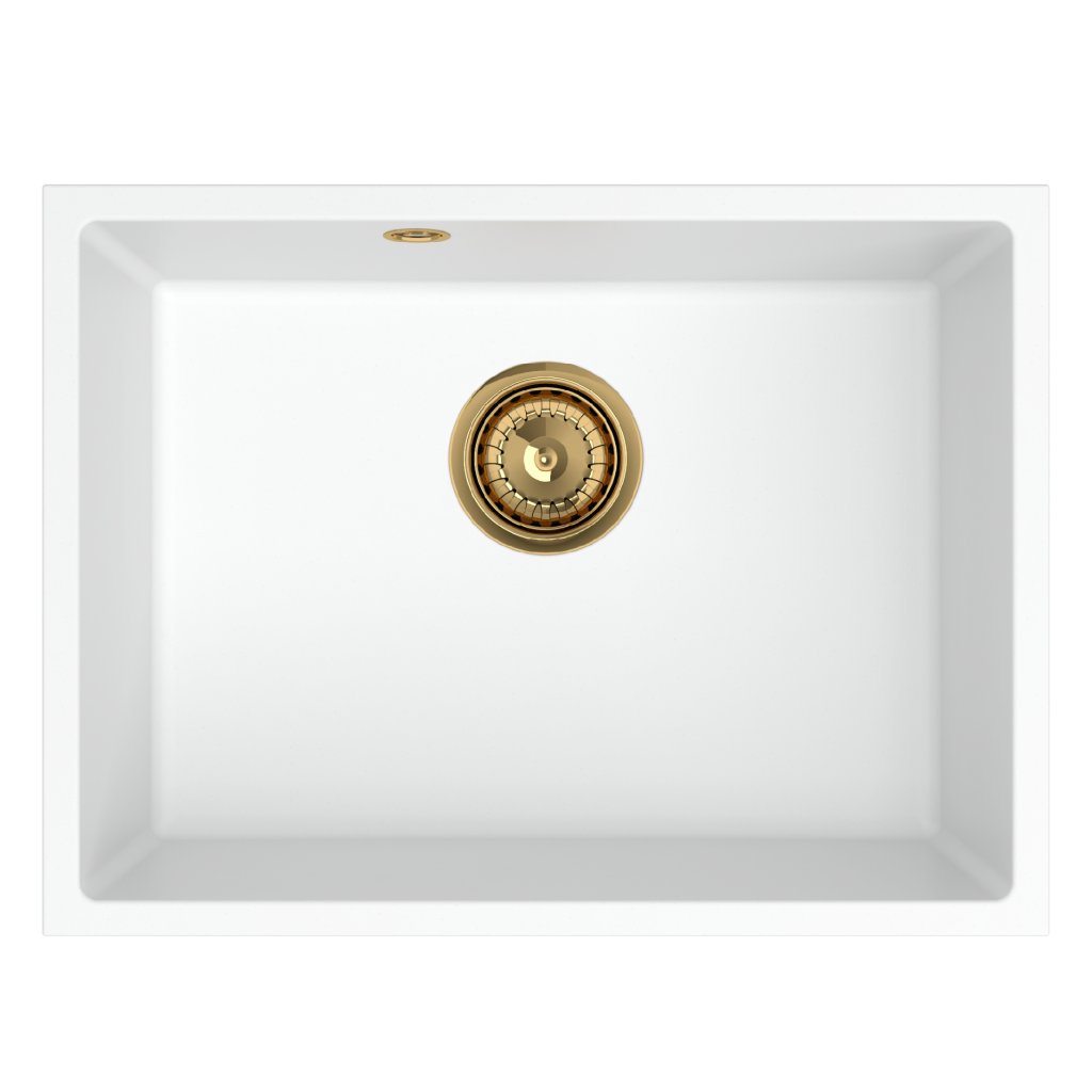 Mosogató minőségi Crypton 60, konyhai gránit mosogató 535x400x205 mm + arany szifon, fehér, SKQ-CRY.W.1KBO.60.XG