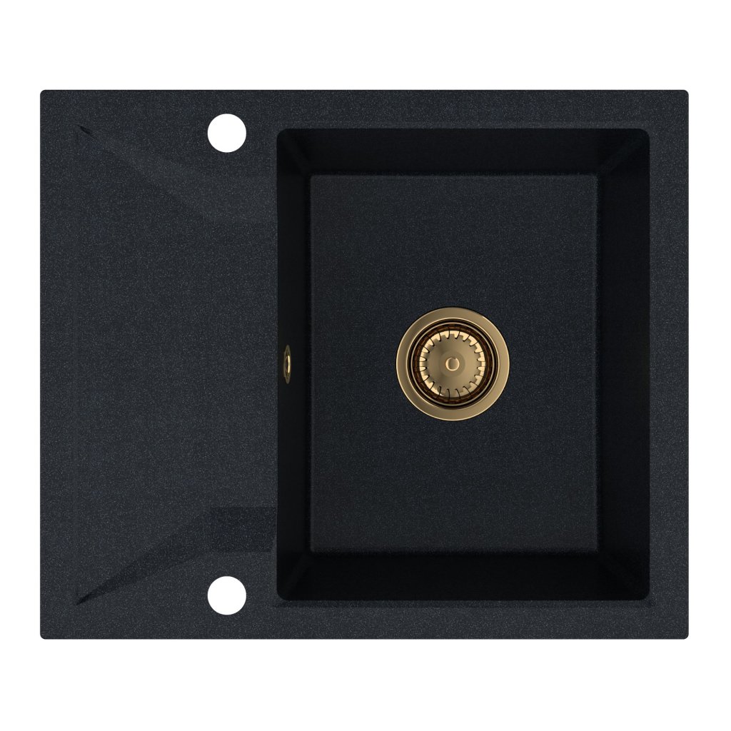 Mosogató Minőségi Obszidián, konyhai gránit mosogató 590x500x210 mm + arany szifon, fekete foltos-Brocade, SKQ-OBS.B.1KKO.XG