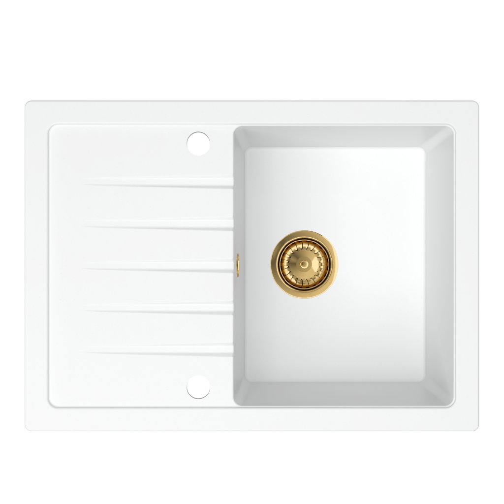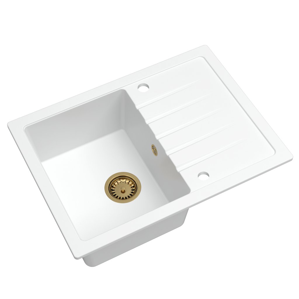 Mosogató Minőségi Titanite, konyhai gránit mosogató 680x495x215 mm + arany szifon, fehér, SKQ-TIT.W.1KKO.XG