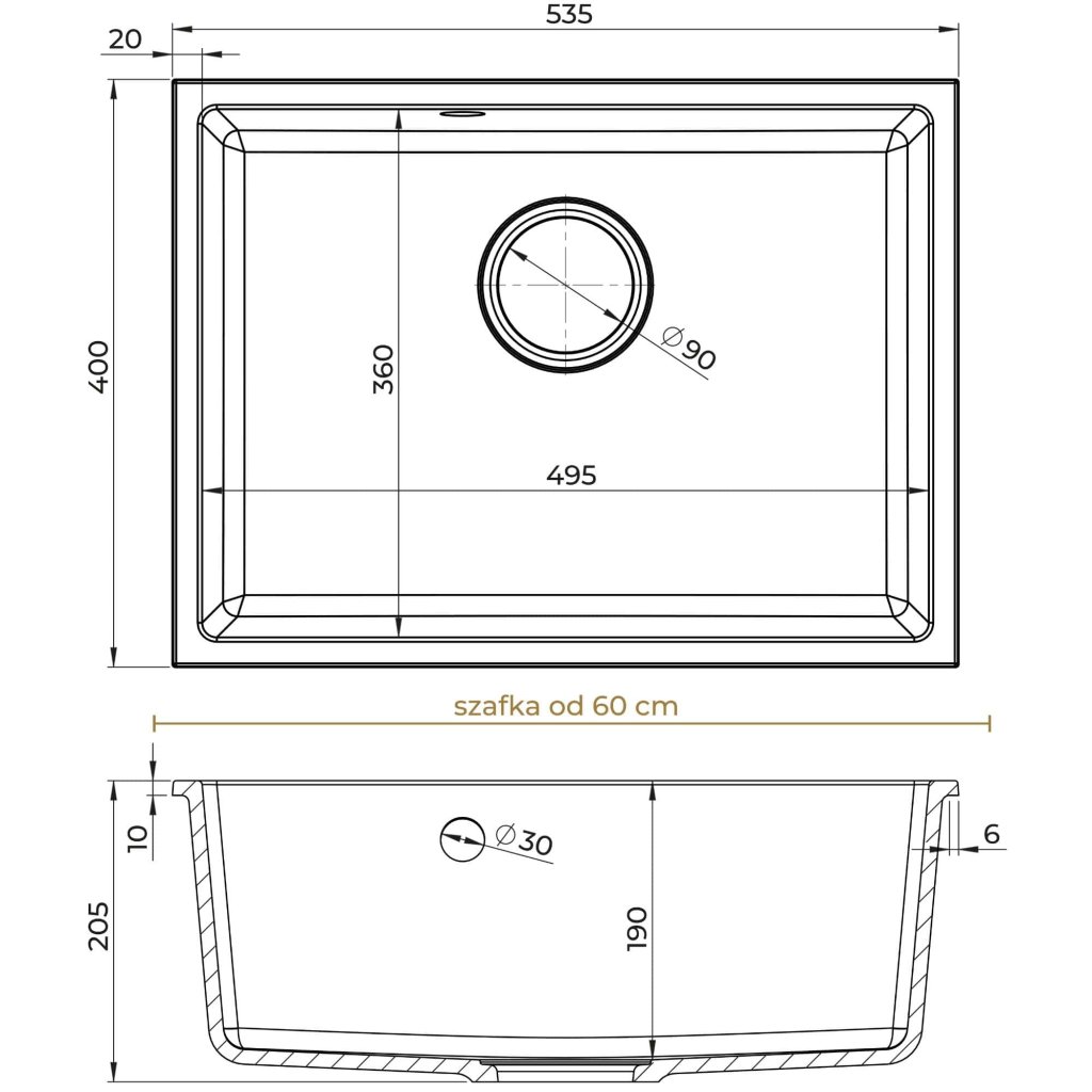 - Mosogató méretei: 535 x 400 x 205 mm