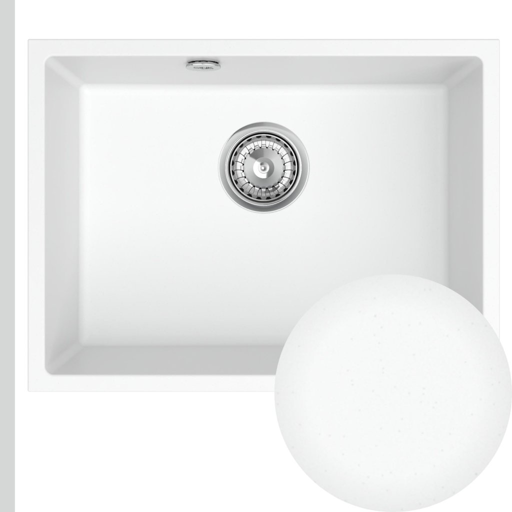 Mosogató Quality Crypton 60, gránit konyhai mosogató 535x400x205 mm + króm szifon, fehér, SKQ-CRY.W.1KBO.60.X
