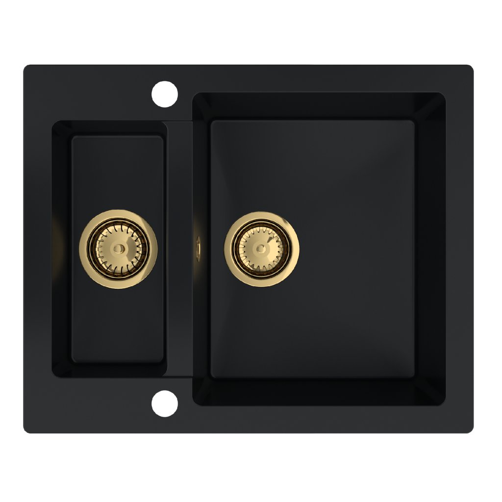 Mosogató Quality Ferrum, konyhai gránit mosogató 605x495x210 mm + arany szifon, fekete, SKQ-FER.C.5KBO.XG