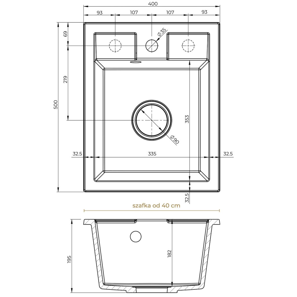 A konyhai mosogató gyárilag vágott középső furattal rendelkezik a csap számára. Ezenkívül a termékben van egy leeresztő nyílás a fűrész és a szifon számára (átmérő 90 mm), valamint egy túlfolyónyílás. Ennek köszönhetően az összeszerelés gyors és nem igényel professzionális felszerelést. Ugyanakkor a mosogatókon van hely egy másik alulról megjelölt lyuk számára. Használja adagoló, automatikus szifondugó vagy vízszűrő felszerelésére. Fúrja ki a lyukat mérés nélkül egy vonalban egy 35 mm-es gyémánt lyukfúróval.