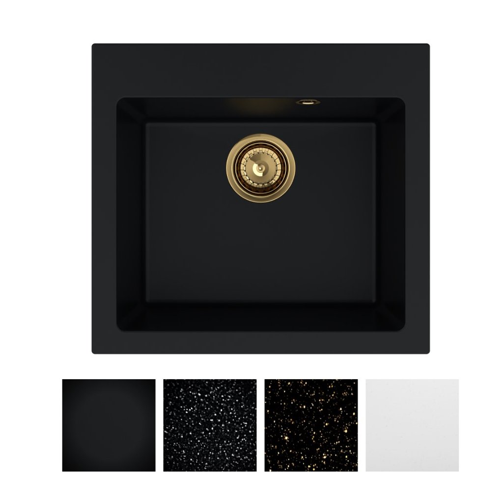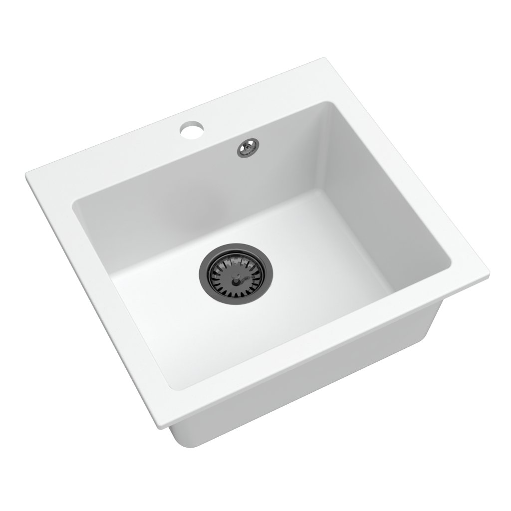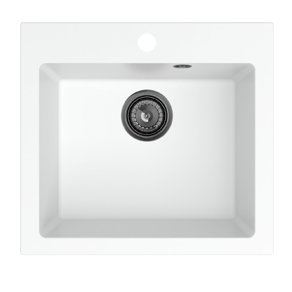 Mosogató Quality Ferrum 50, konyhai gránit mosogató 490x450x195 mm + fekete szifon, fehér, SKQ-FER.W.1K50.XB