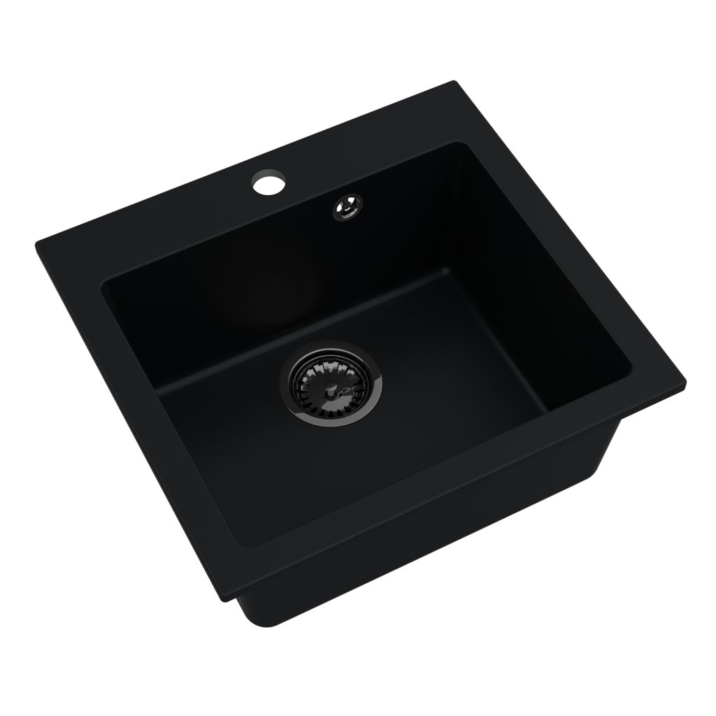 Mosogató Quality Ferrum 50, konyhai gránit mosogató 490x450x195 mm + fekete szifon, fekete, SKQ-FER.C.1K50.XB