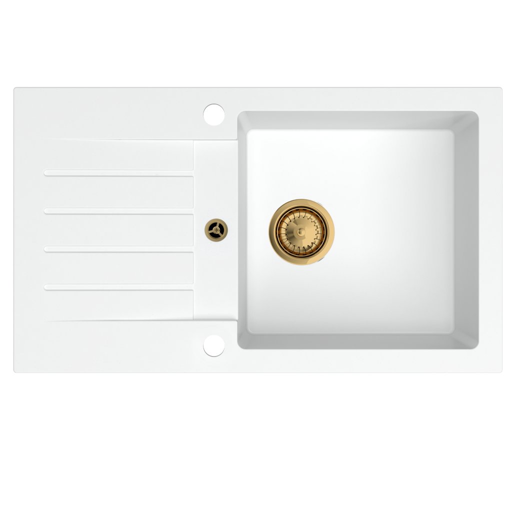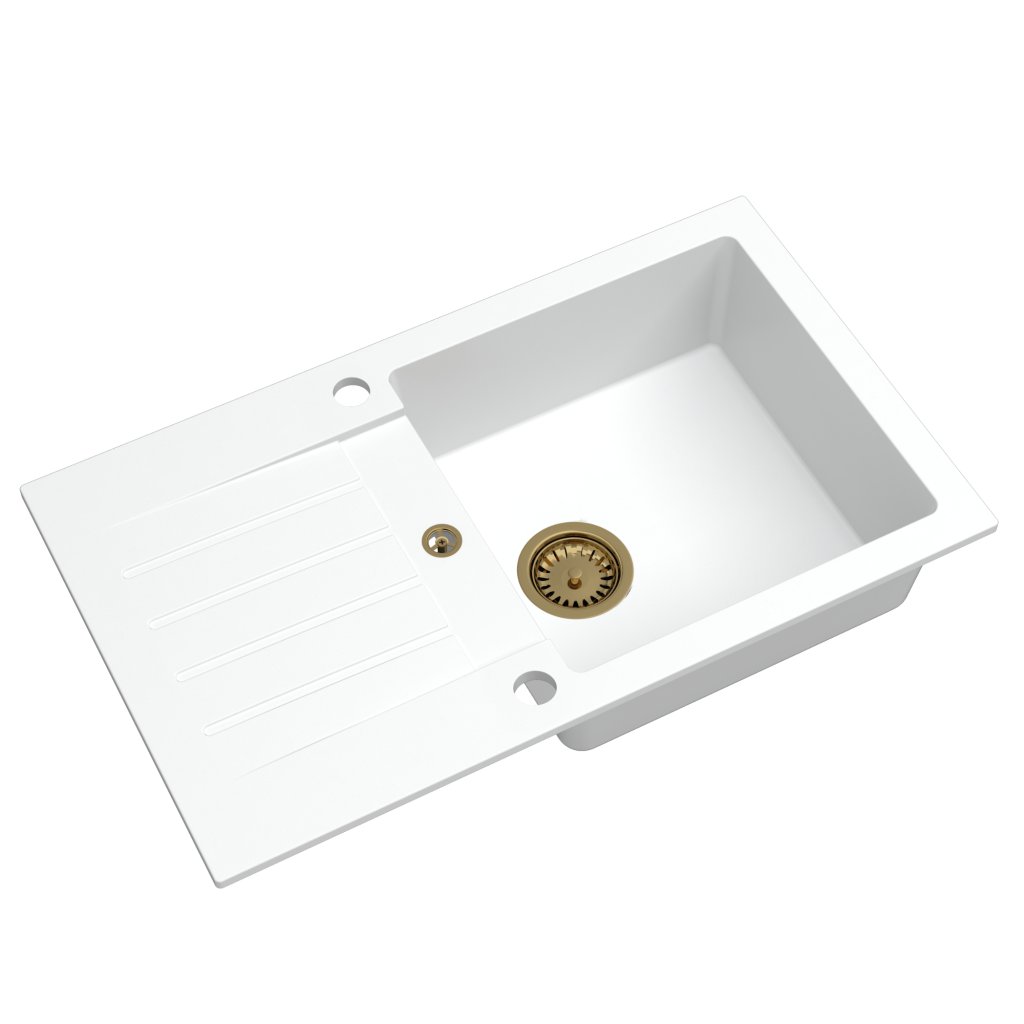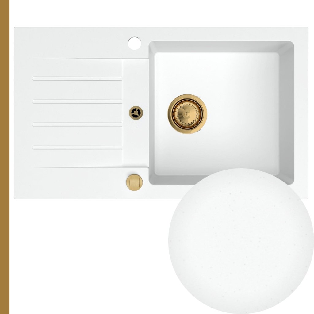 Mosogató Quality Natalie, konyhai gránit mosogató 770x450x170 mm + arany szifon, fehér, SKQ-NAT.W.1KDO.XG