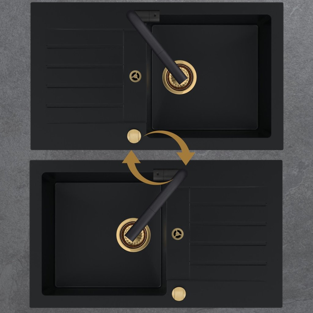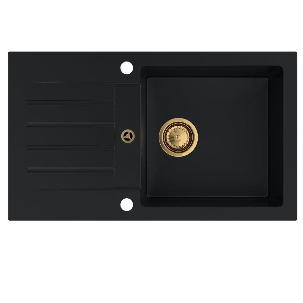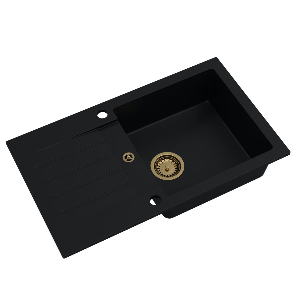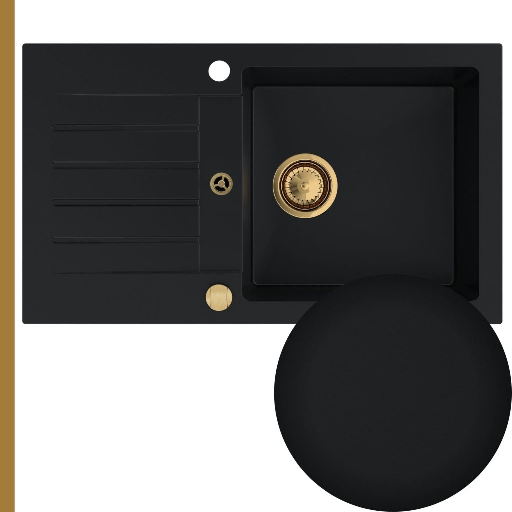Mosogató Quality Natalie, konyhai gránit mosogató 770x450x170 mm + arany szifon, fekete, SKQ-NAT.C.1KDO.XG