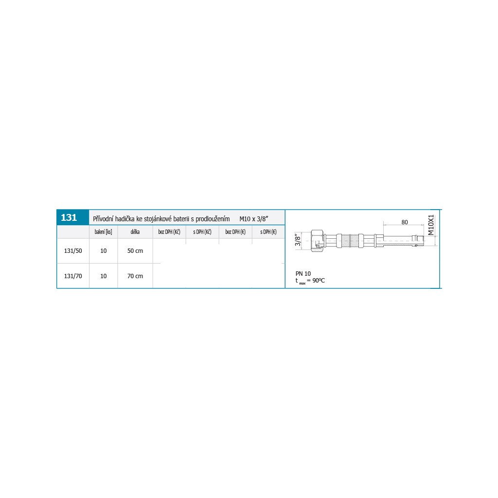 Rozsdamentes acél fonott ellátó tömlő hosszabbítóval. Az egyik végén a sapka anya a másikon egy menet az állványkeverőhöz való csatlakoztatáshoz. M10 x 3/8". PN 10.Kiegészítő paraméterek