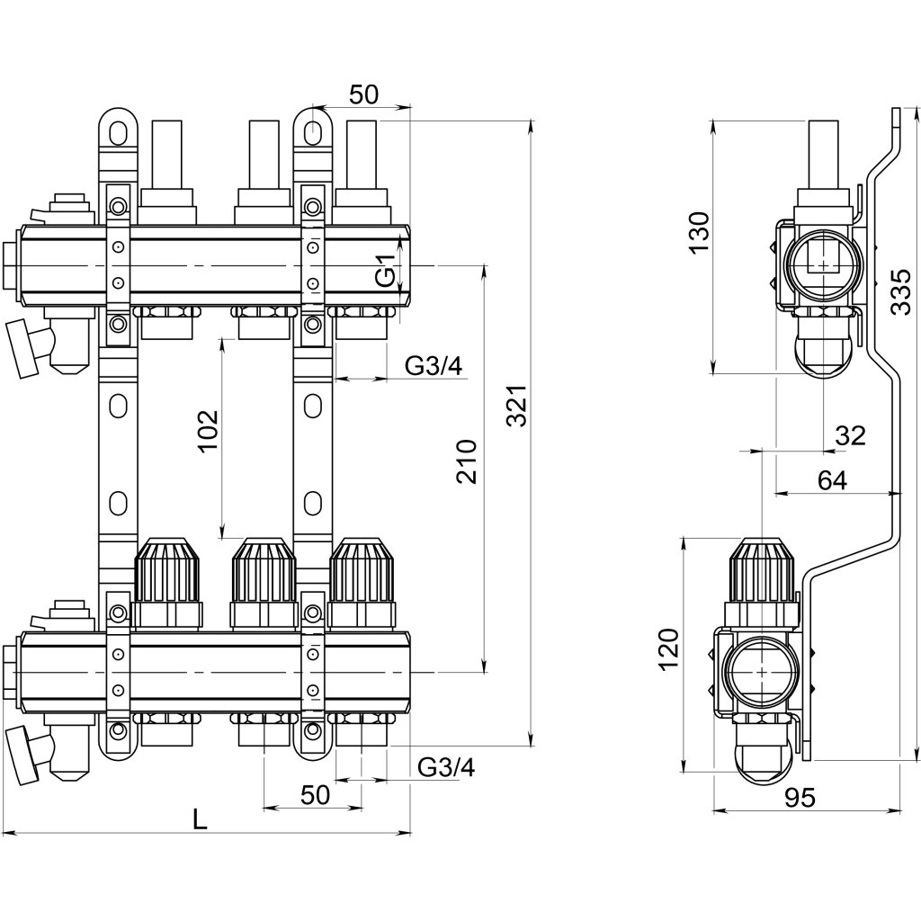 Elosztó elzárószelepekkel és vezérlőszerelvényekkel áramlásmérőkkel padlófűtéshez, G1 "csatlakozás, kimenet G3 / 4" kompressziós szerelvény Eurocone-al. Az elosztó kiegészíthető GM40GPA szivattyúkészlettel és JY118 / 25 golyóscsapokkal. Az elosztói tartozékok az Elosztói tartozékok részben találhatók. A megfelelő szekrények táblázatát a termékképen találjaKiegészítő paraméterek