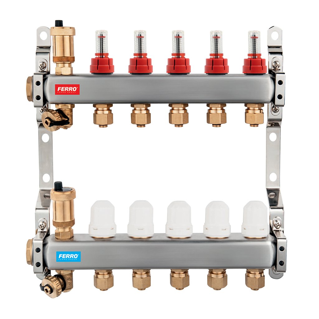 Elosztó elzárószelepekkel és szabályozó szerelvényekkel áramlásmérőkkel padlófűtéshez, G1 "csatlakozás, kimenet AL-PEX G1 / 2" kompressziós szerelvénnyel, mely a csomag részét képezi. Az elosztó kiegészíthető GM40GPA szivattyúkészlettel és JY118 / 25 golyóscsapokkal. Az elosztói tartozékok az Elosztói tartozékok részben találhatók. A megfelelő szekrények táblázatát a termékképen találjaKiegészítő paraméterek