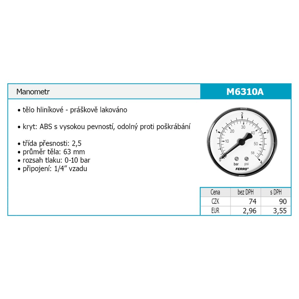 Axiális nyomásmérő • Alumínium ház - porszórt • Borítás: ABS nagy szilárdsággal, karcálló • Pontossági osztály: 2,5 • Test átmérő: 63 mm • Nyomástartomány: 0-10 bar • Csatlakozás: 1/4 ”hátsóKiegészítő paraméterek