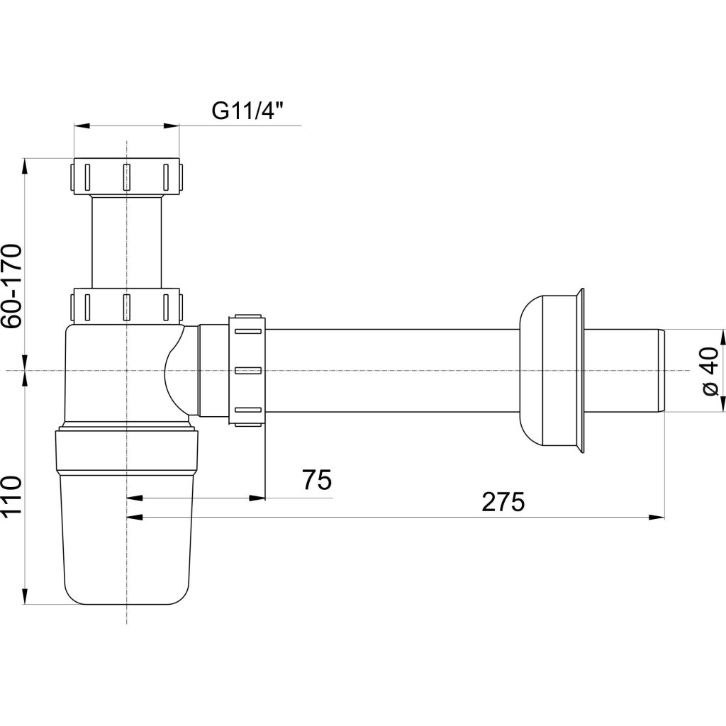 Szifon 5/4” menettel. Hulladék átmérő 40 mm. Leeresztő kupakkal ellátott csaptelepokhoz tervezve.Kiegészítő paraméterek