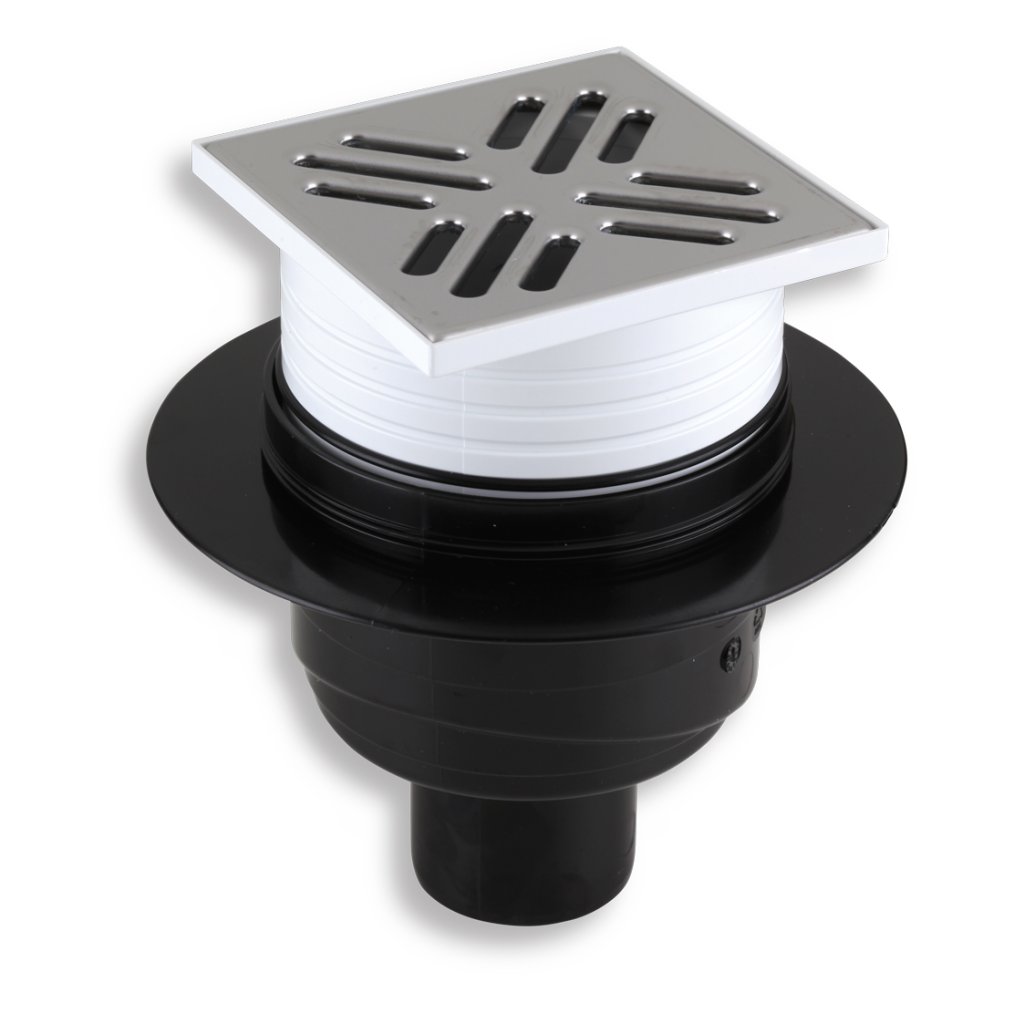 Méretek 105 x 105 mm. Hulladék átmérője 50 mm. A szifon teste műanyag Rozsdamentes acél rács 105 x 105 mm.Kiegészítő paraméterek