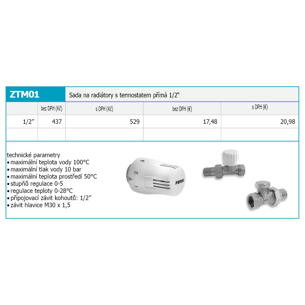 Termosztátos radiátorkészlet egyenes 1/2 "műszaki paraméterek • maximális vízhőmérséklet 100 ° C • maximális víznyomás 10 bar • maximális környezeti hőmérséklet 50 ° C • szabályozási szintek 0-5 • hőmérséklet szabályozás 0-28 ° C • csatlakozó menetes csap : 1/2 ”• fejmenet M30 x 1,5Kiegészítő paraméterek