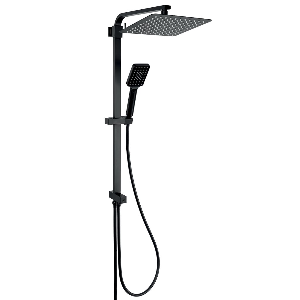 Első osztályú design fekete matrac. A készlet alkalmas alsó kivezetésű kád- vagy zuhanycsaphoz való csatlakoztatásra. A csomag tartalmaz egy 250 x 250 mm átmérőjű fejzuhanyzót, egy 150 cm-es fémtömlőt és egy 1 állású kézizuhanyt. A készlet magassága 830 - 1275 mm. A csomag egy 70 cm hosszú összekötő csövet tartalmaz.Kiegészítő paraméterek