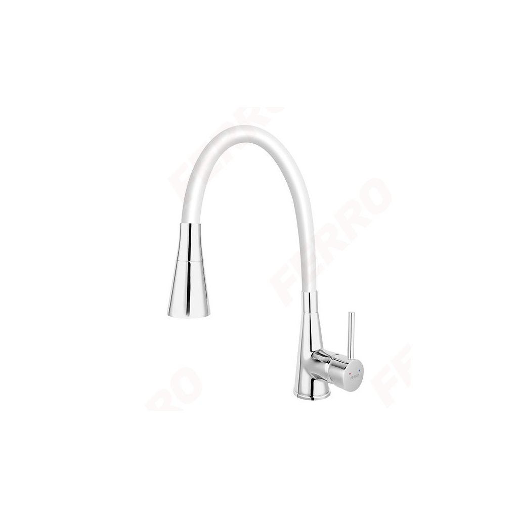 FERRO Zumba II, Mosogató/Magas csaptelep rugalmas karral, fehér-króm BZA42W