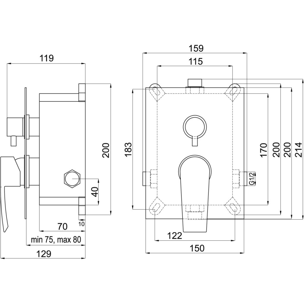 - Típus: rejtett kád/zuhanycsaptelep, 2 kivezetéses