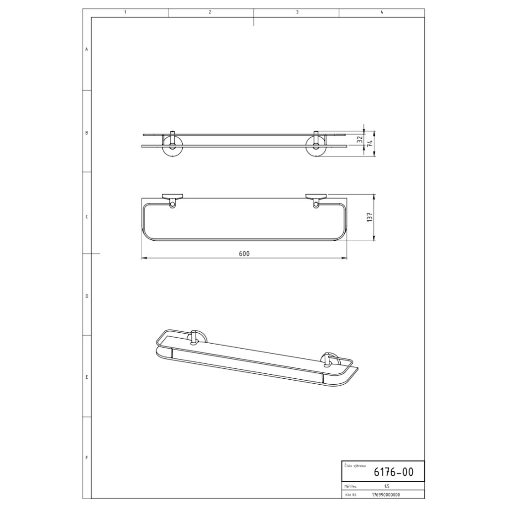 Polcüveg mérete 125 x 600 mm. Átlátszó üveg, üvegvastagság 6 mm, korlát magassága 30 mm.Kiegészítő paraméterek