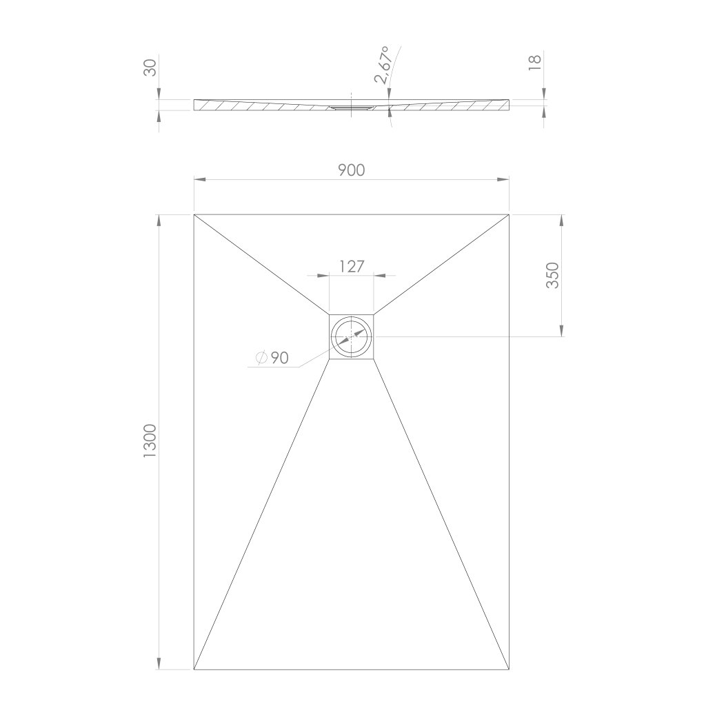 - A zuhanytálca a kívánt méretre vágható. A tálcával történő vágásnak egyenesnek kell lennie (rövidítés, ferde, kivágás).